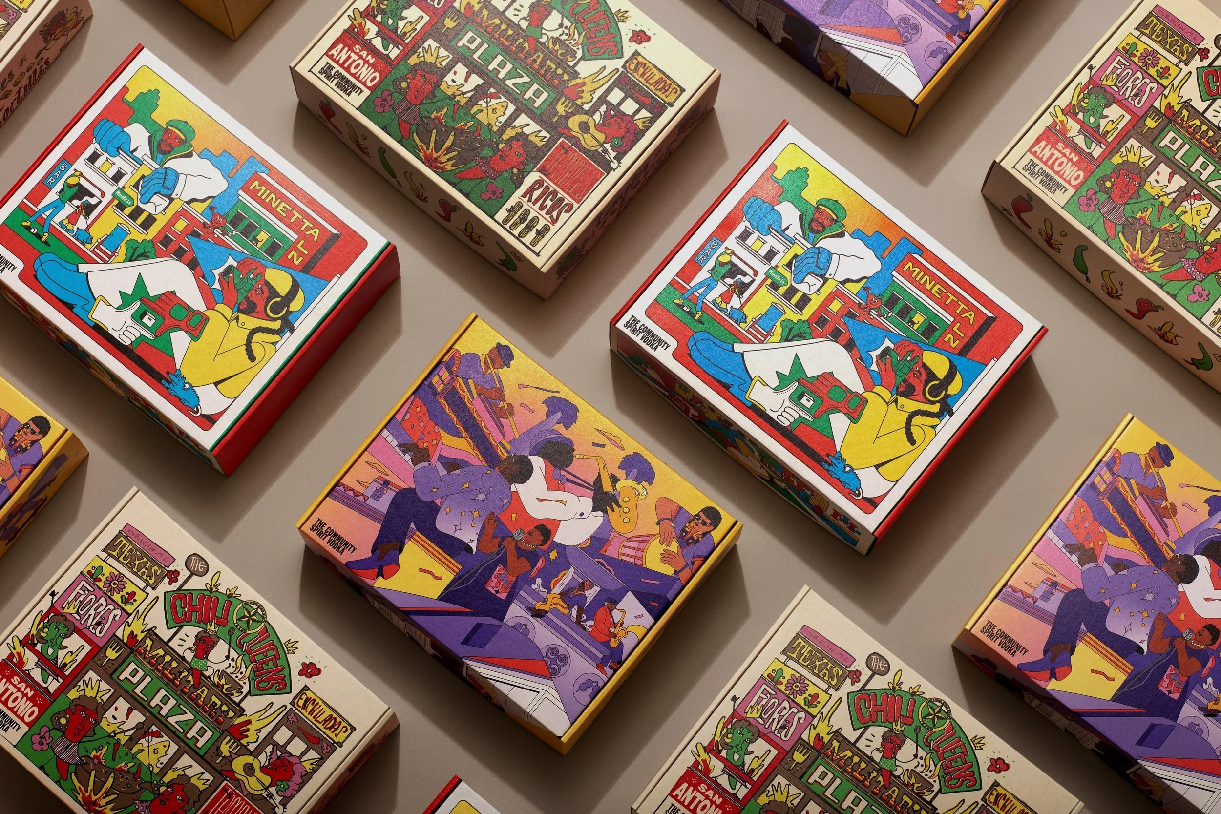 Each bottle’s label is illustrated by an artist residing in these communities, and each comes with its own cocktail recipe inspired by that block’s unique flavor and spirit.